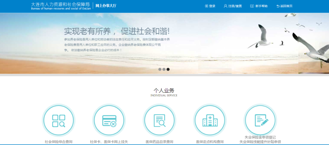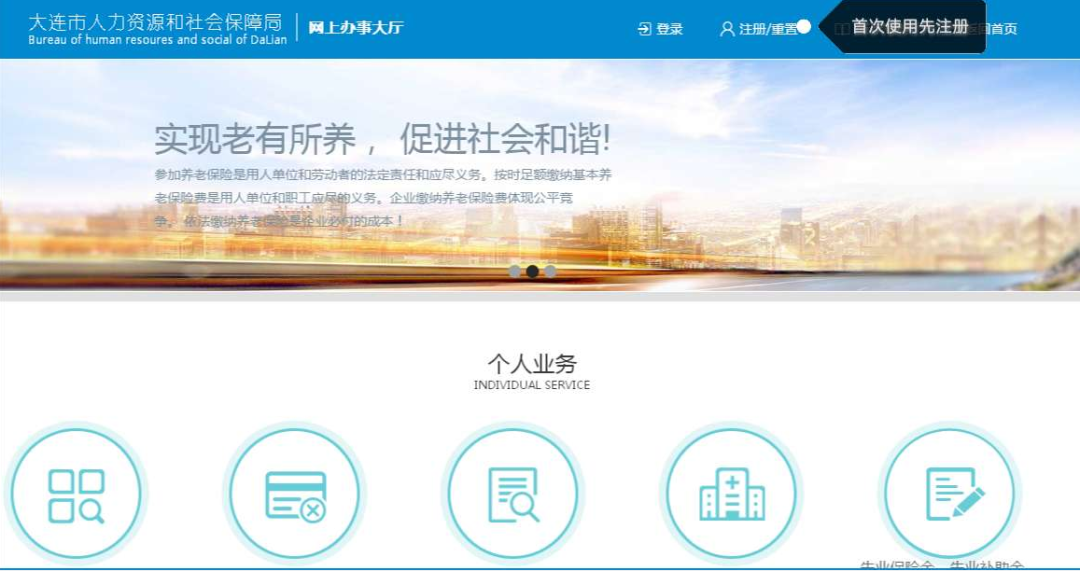 步驟一:失業(yè)人員本人通過計算機登錄大連市人力資源和社會保障局-網(wǎng)上辦事大廳→個人業(yè)務(wù)(網(wǎng)址:http://bsdt.dlyun.work/personal.jsp)