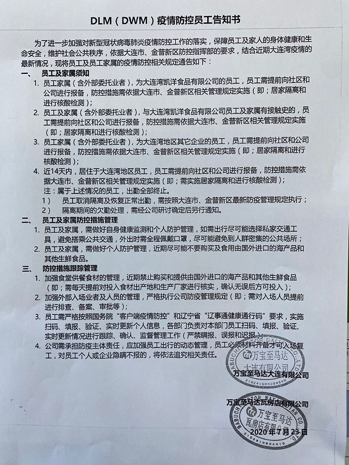 DLM(DWM)疫情防控員工告知書